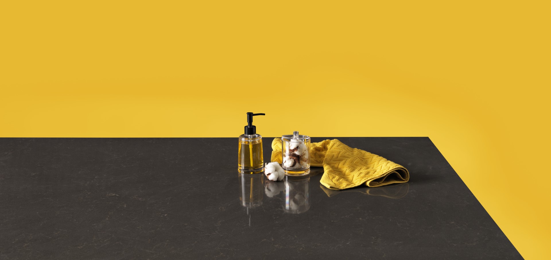 Banyoda bu dengeyi duvar ve zeminde gri, banyo aksesuarlarında sarı objeleri tercih ederek sağlayabiliriz. Ya da parlak sarı sabunluklar ve iç ısıtan yumuşacık banyo kilimleriyle Belenco Loft koleksiyonundan Metropol Grey rengini tezgahlarınızda kullanarak olağanüstü bir uyum ve doğal ışıltı ile gelen canlılık hissini yakalayabilirsiniz. Bu görünüm aynı zamanda kuvars yüzeylerin sağladığı temizlik hissi ve kullanım kolaylığı ile birlikte banyolarınızda ferahlatıcı ve enerjik bir hava yakalamanıza yardımcı olur.